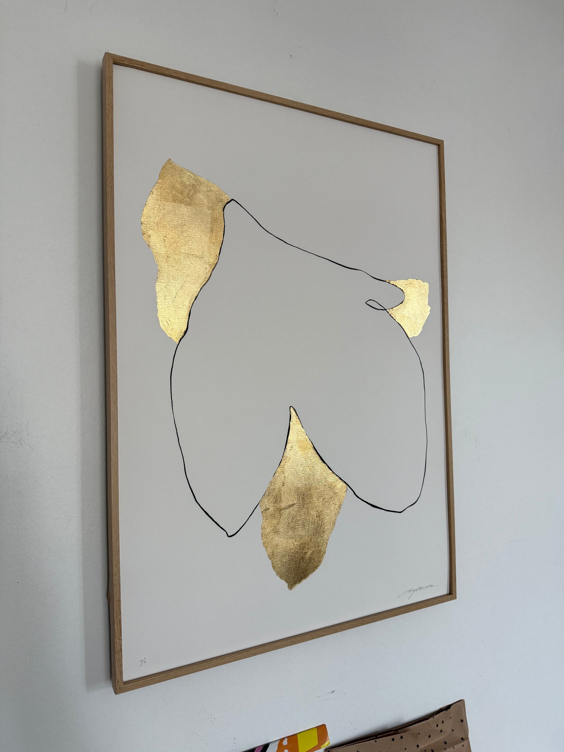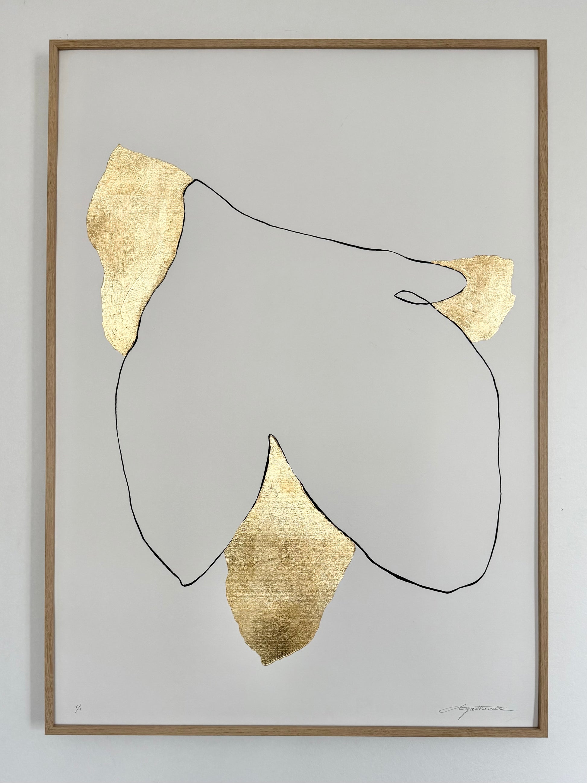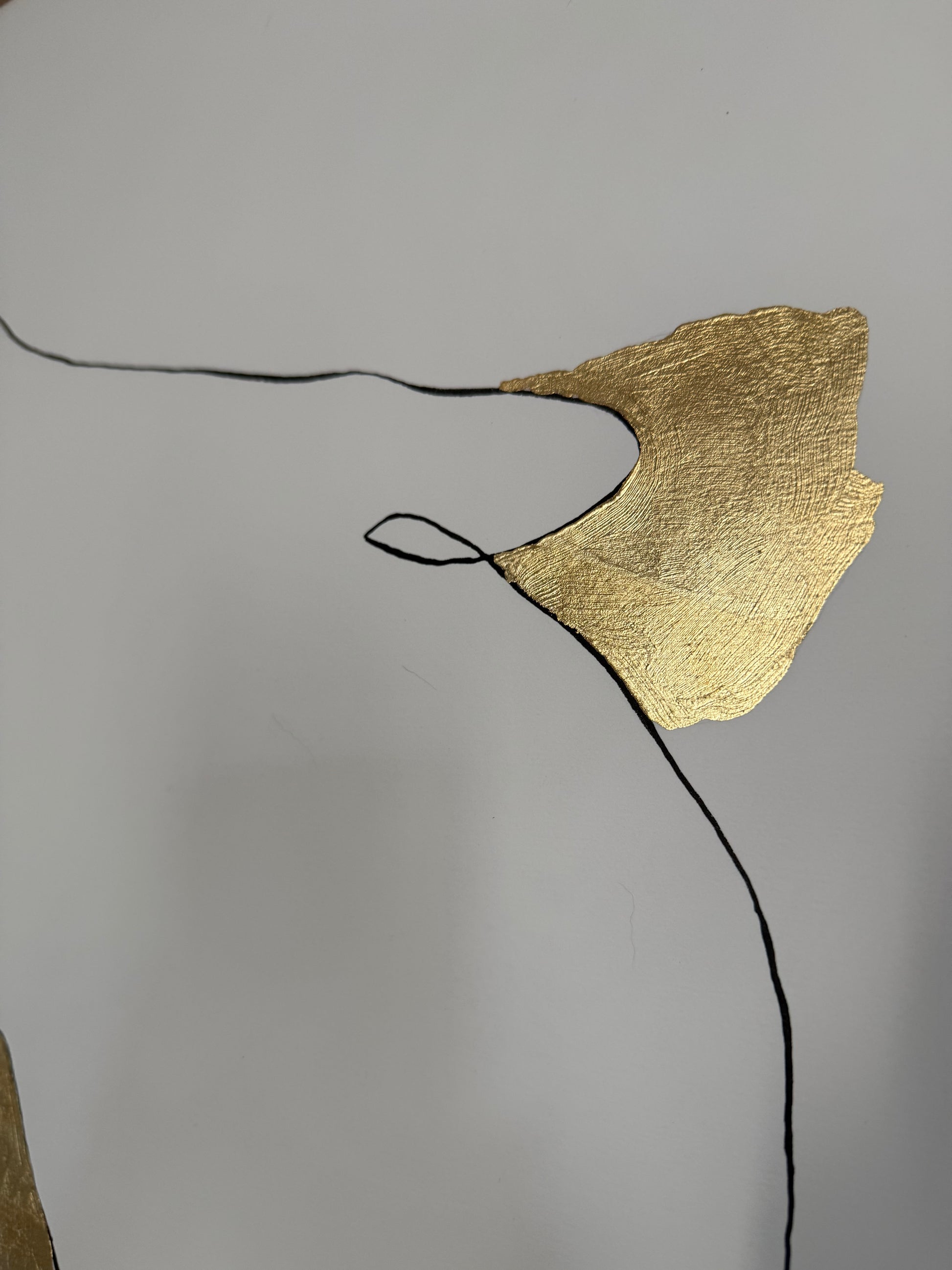 Encre de Chine et feuille d'or 24 carats sur papier de couleur blanche (285 gms)