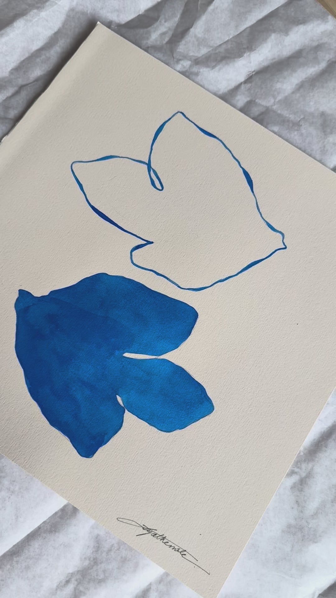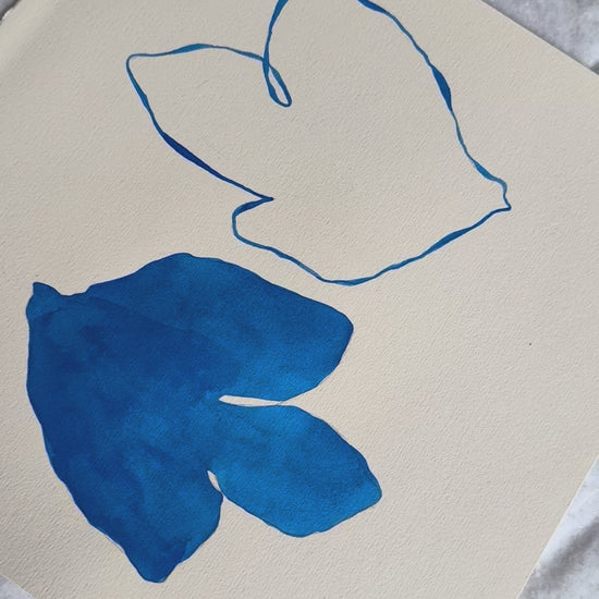 Encre de Chine bleu Cobalt sur papier 65% coton de couleur ivoire (285 gms)