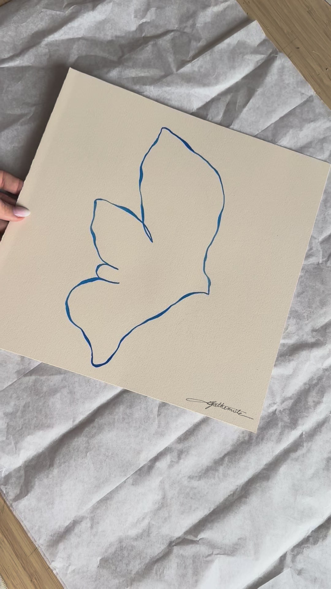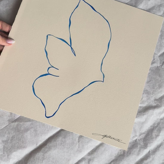 Encre de Chine bleu Cobalt sur papier 65% coton de couleur ivoire (285 gms)