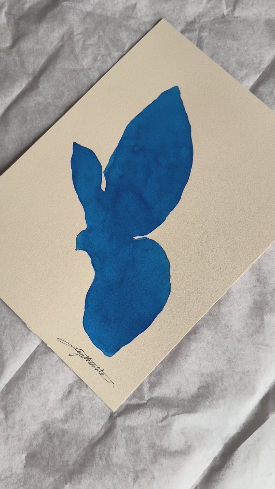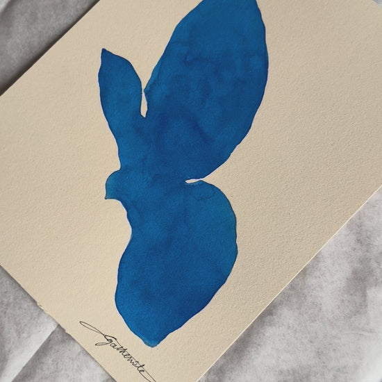Encre de Chine bleu Cobalt sur papier 65% coton de couleur ivoire (285 gms)