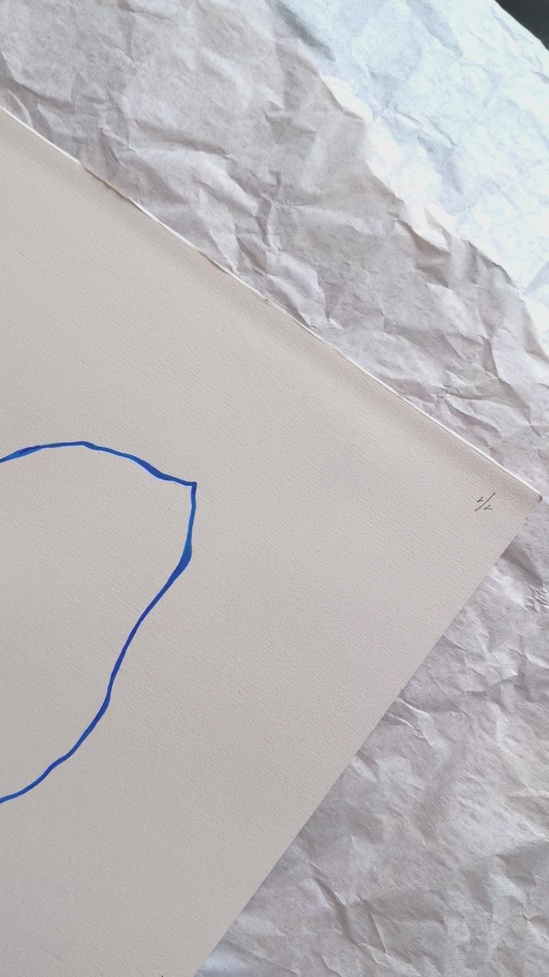Encre de chine bleu Cobalt sur papier 65% coton de couleur ivoire (285 gms)
