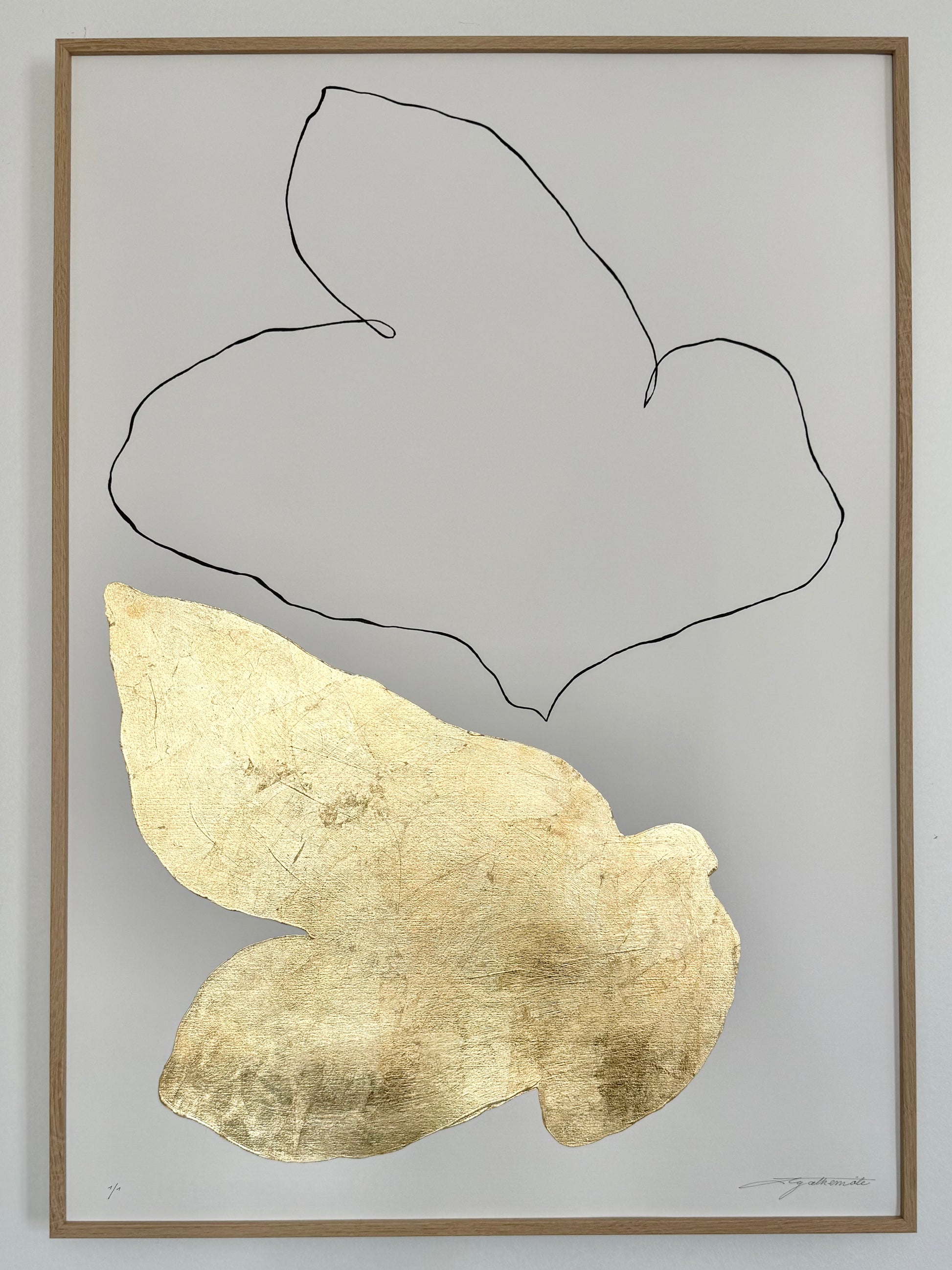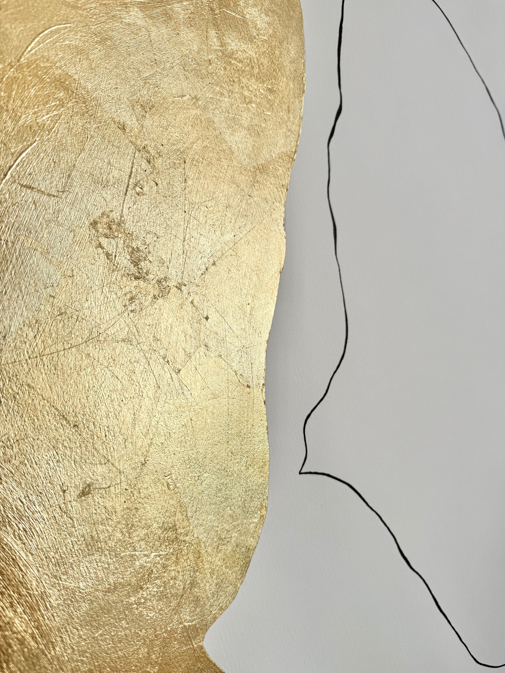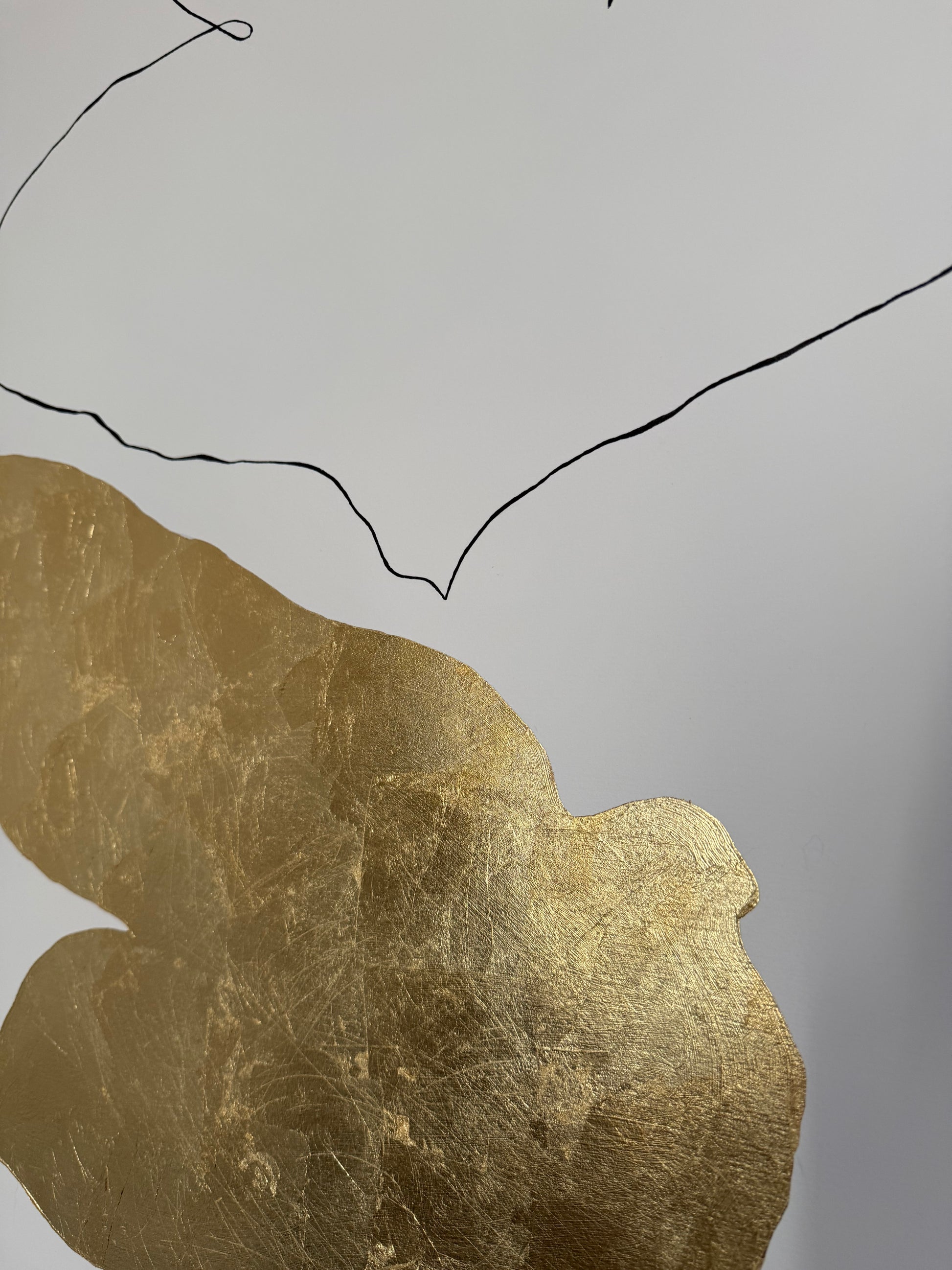 Encre de Chine et feuille d'or 24 carats sur papier de couleur blanche (285 gms)