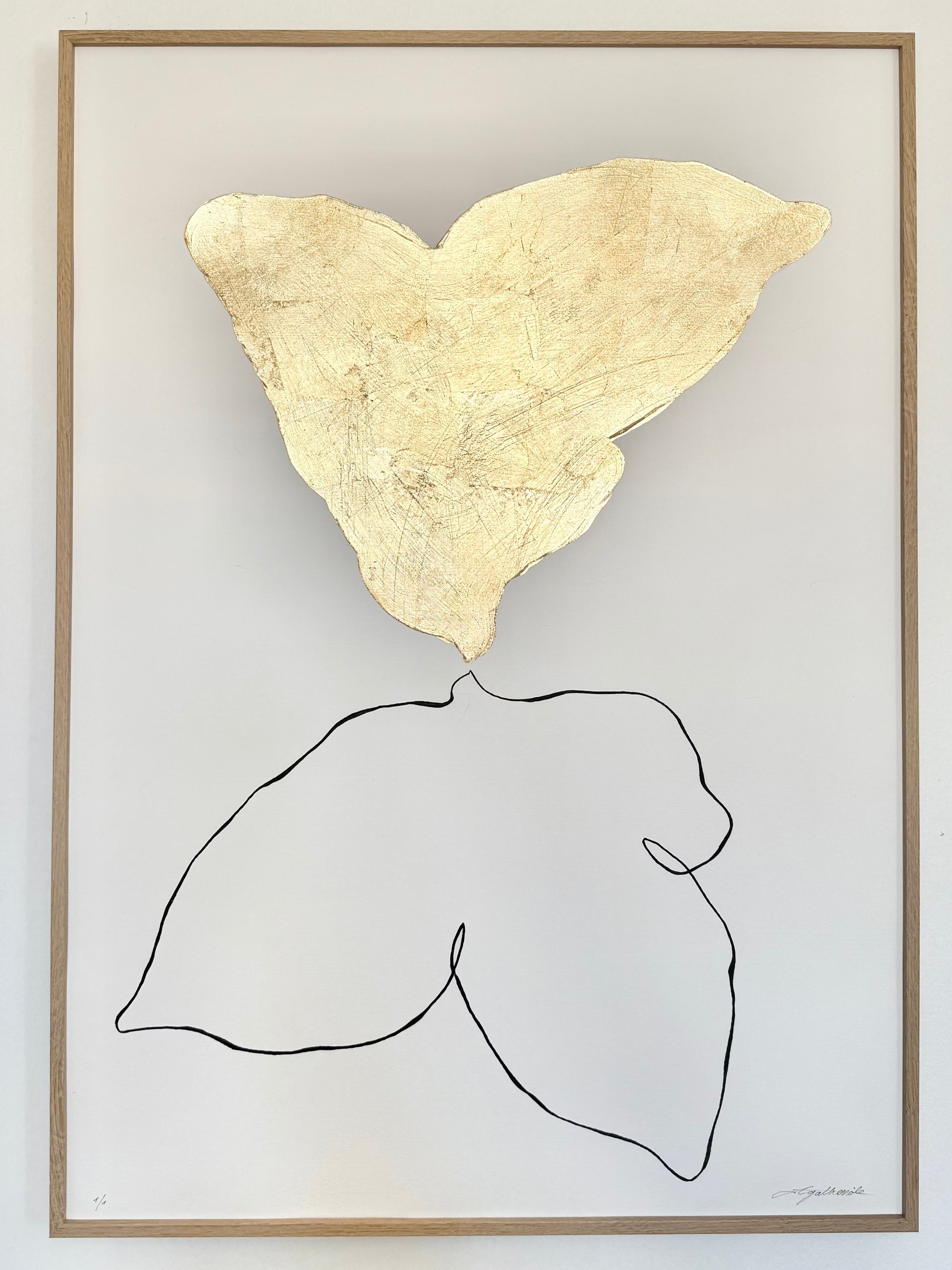 Encre de Chine et feuille d'or 24 carats sur papier de couleur blanche (285 gms)