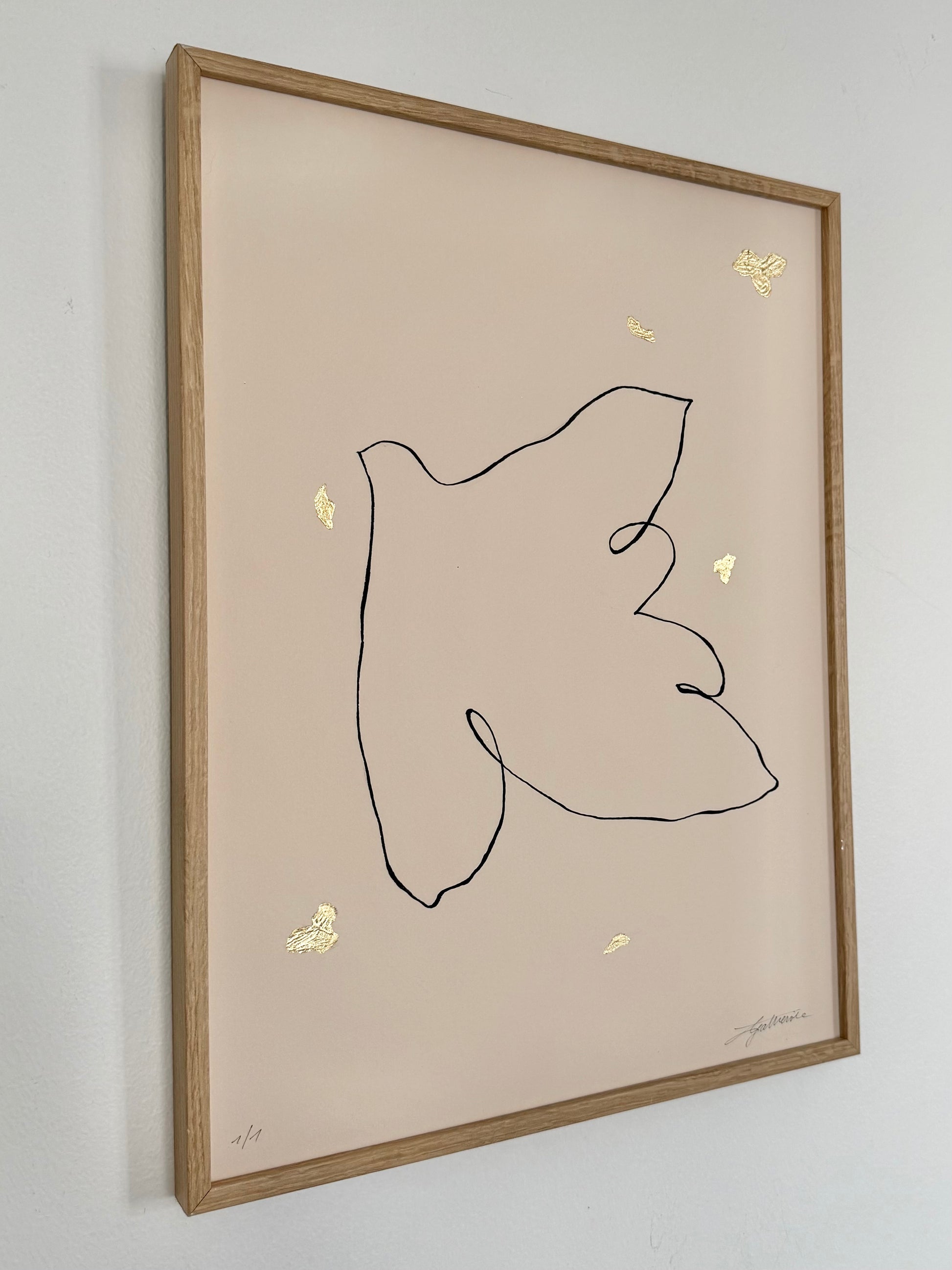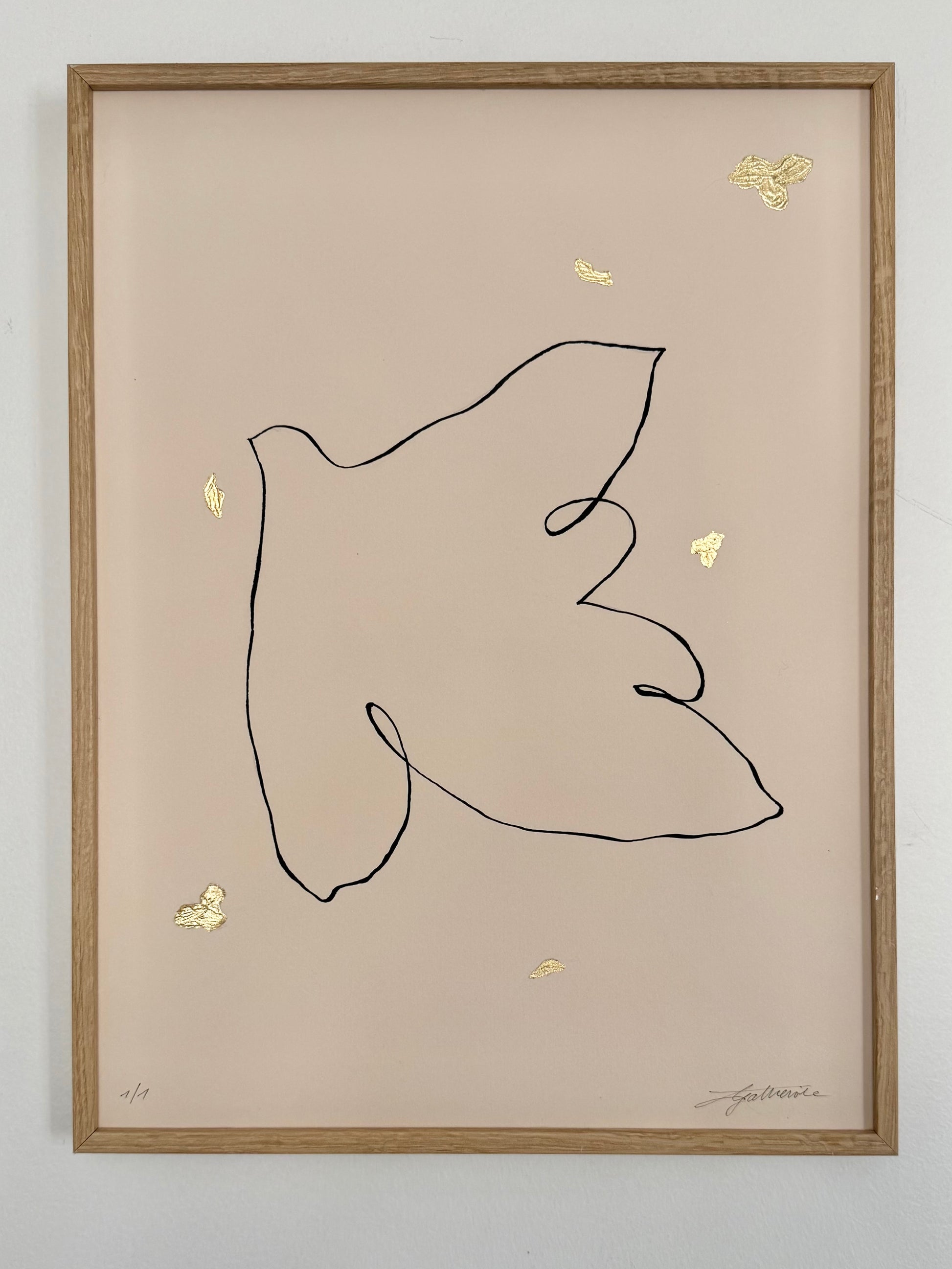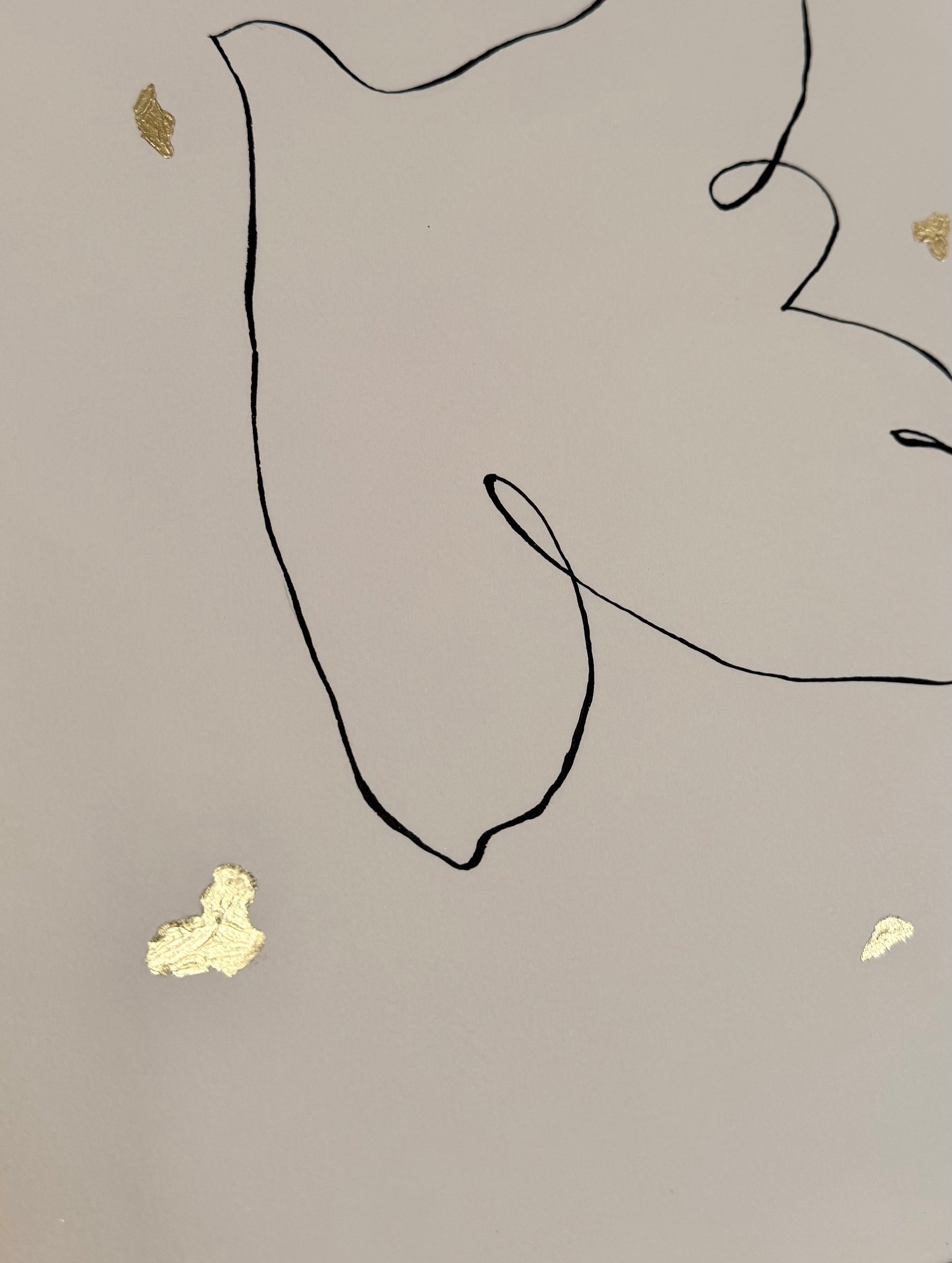 Encre de Chine et feuille d'or 24 carats sur papier de couleur ivoire (285 gms)