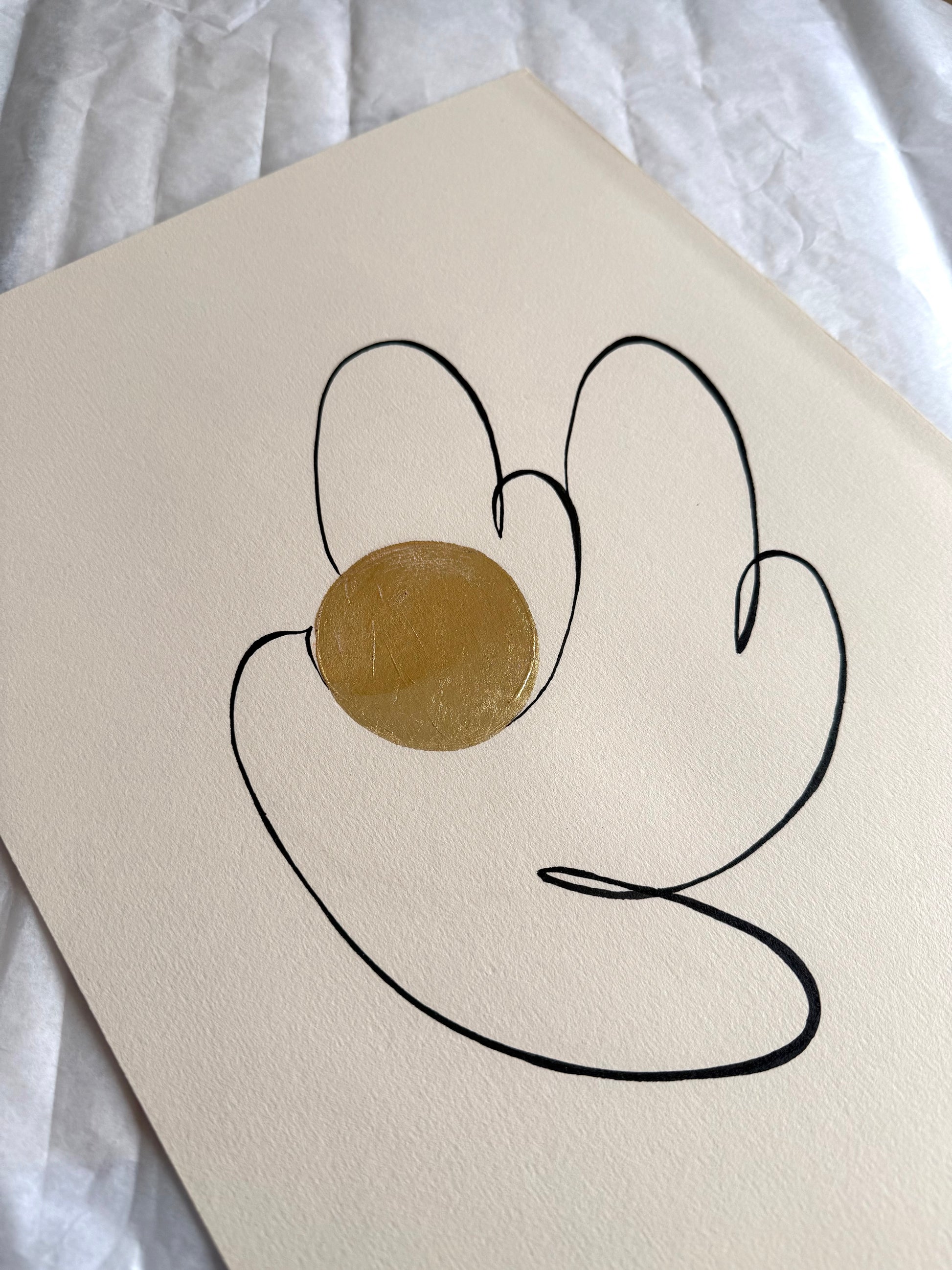 Encre de Chine noire et feuille d'or 24 carats sur papier 65% coton de couleur ivoire (285 gms)