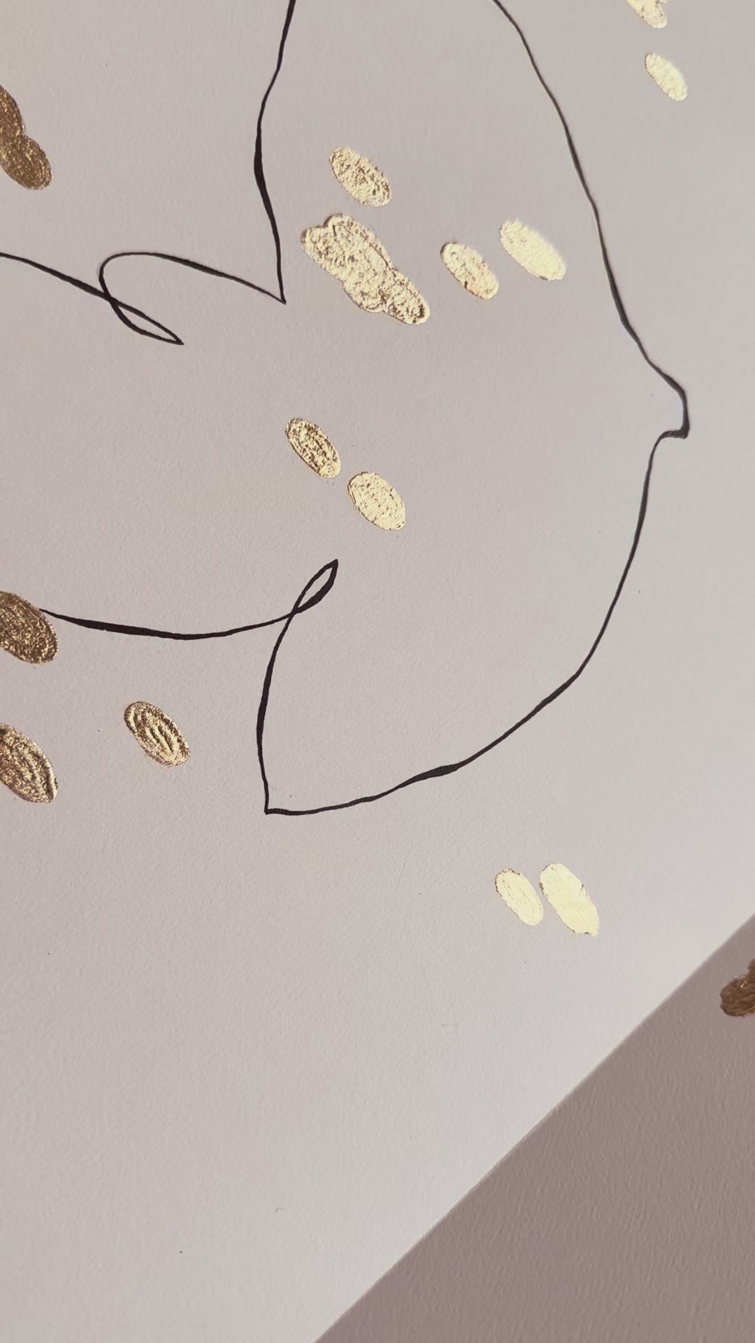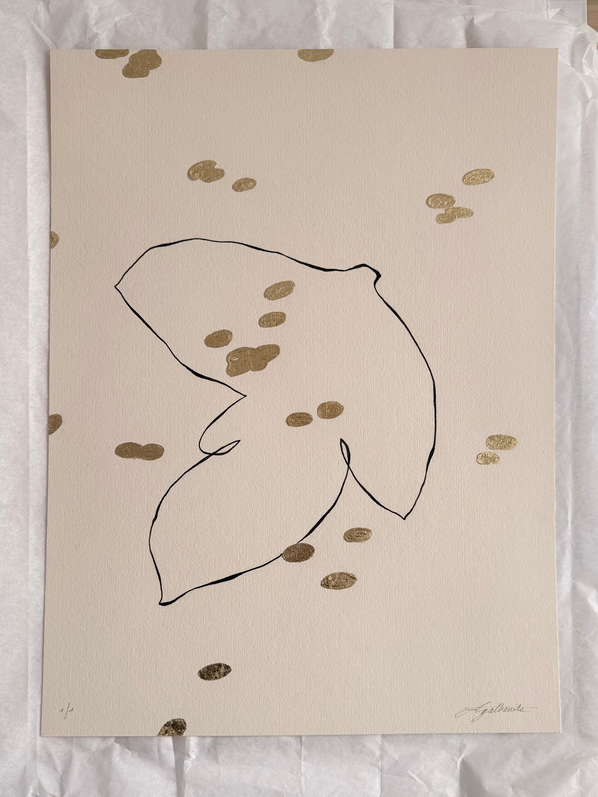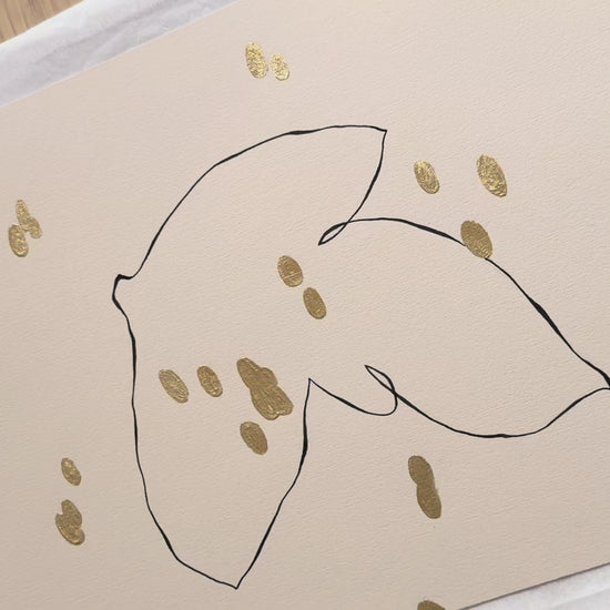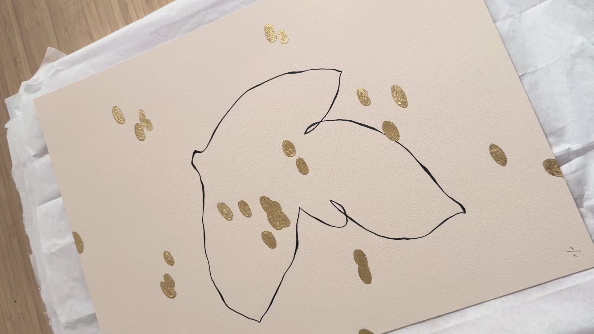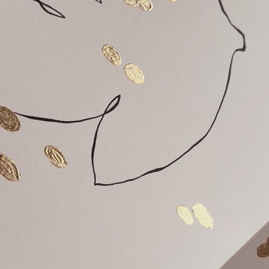 Encre de Chine et feuille d'or 24 carats sur papier 65% coton de couleur ivoire (285 gms)