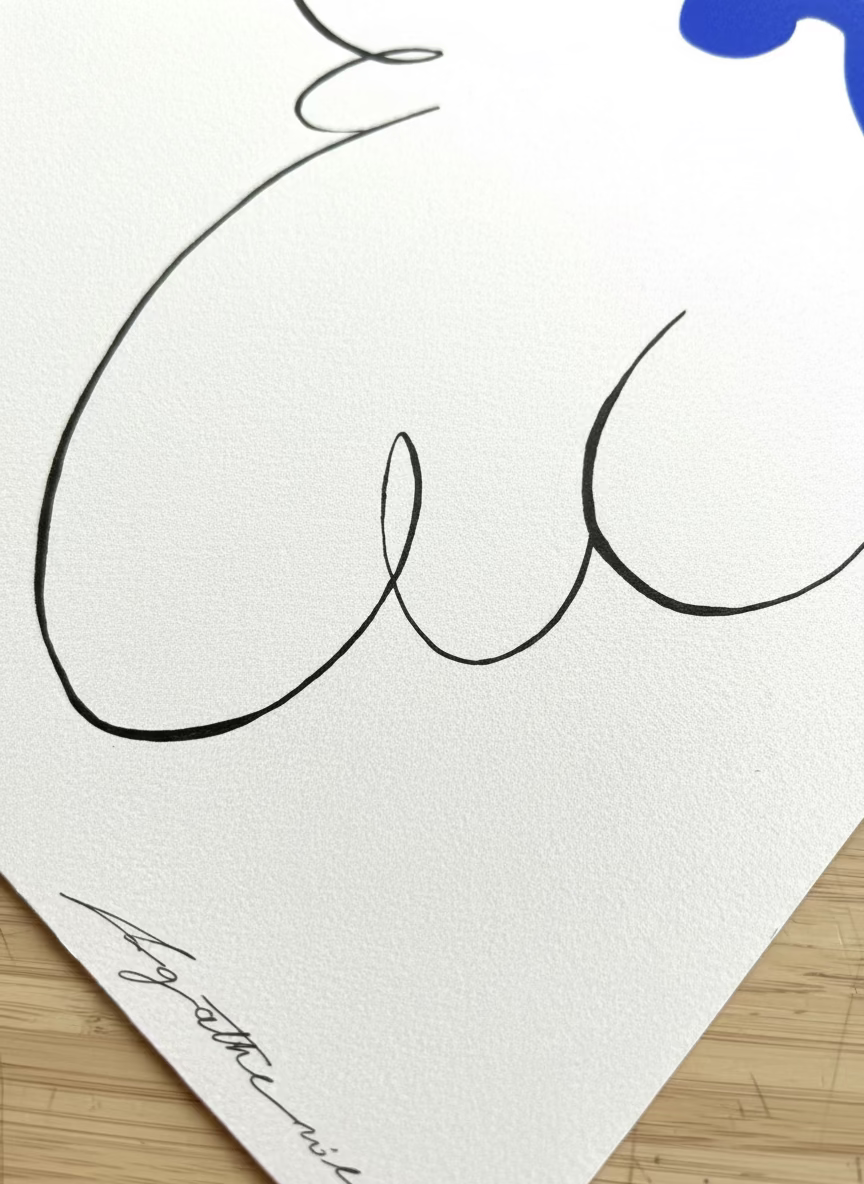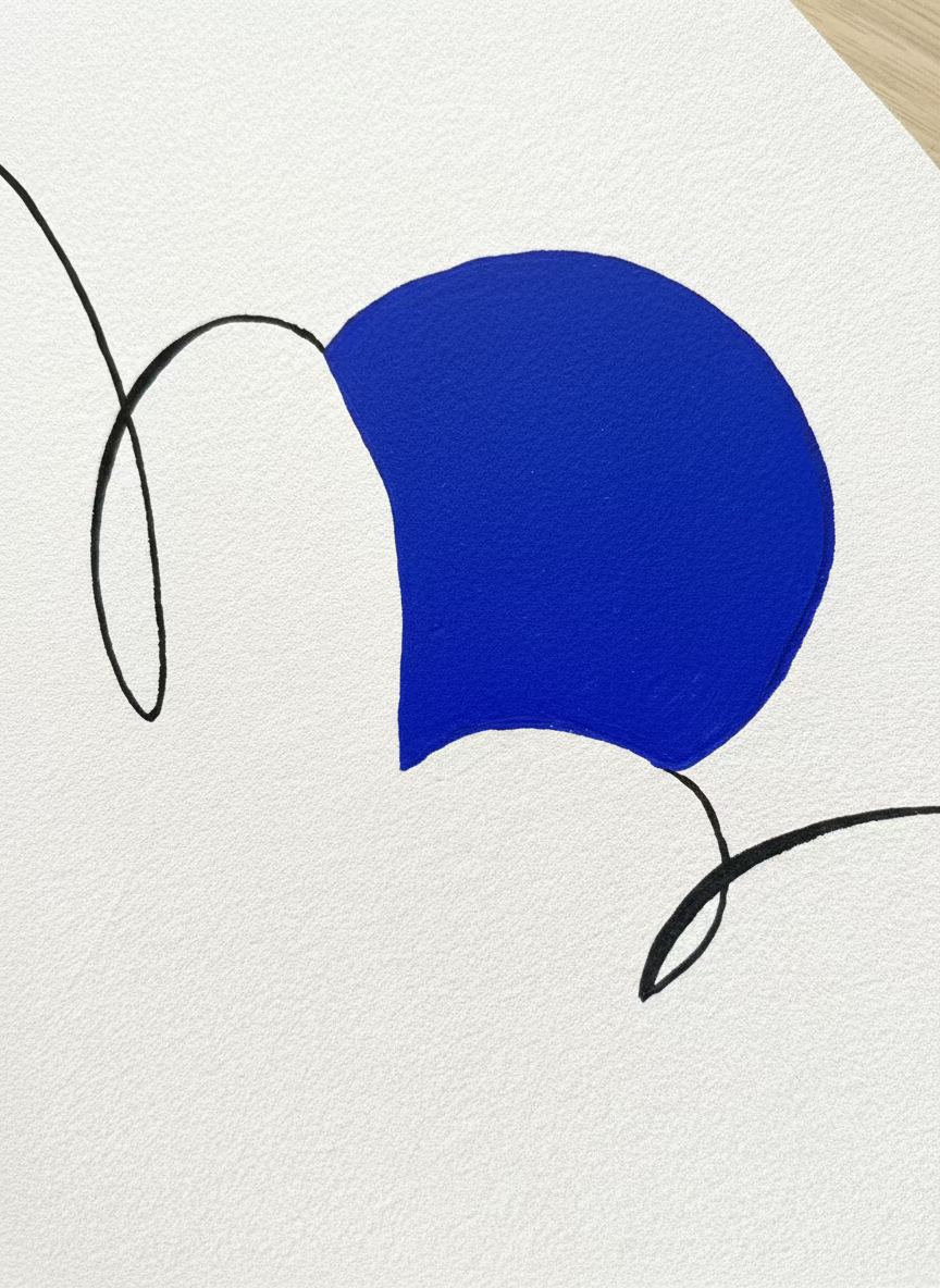 Encre de chine noire et acrylique bleu Yves Klein sur papier 65% coton de couleur ivoire (285 gms)